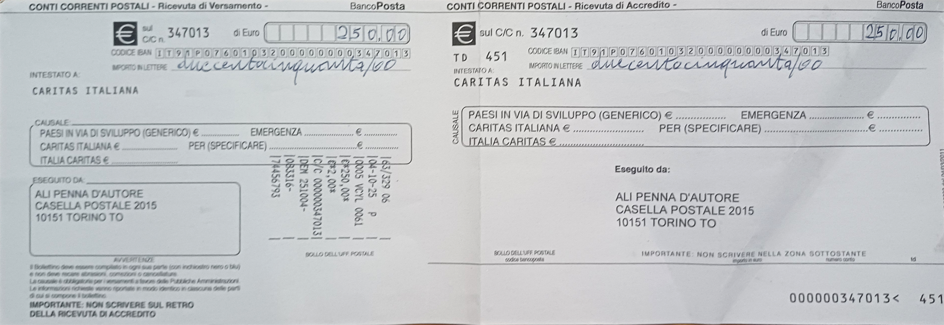 Caritas Italiana: 250,00 euro (25/05/2019)